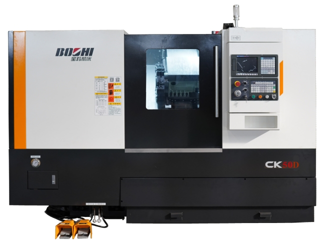CK40D/CK50D是一款配置國產(chǎn)電主軸的實用型數(shù)控車床,采用高強(qiáng)度鑄鐵鑄造、床身底座整體式結(jié)構(gòu)、傾斜導(dǎo)軌,主軸軸承及進(jìn)給絲杠專用軸承傳動噪音低;配備國產(chǎn)多工位轉(zhuǎn)塔刀架,就近換刀。機(jī)床可配置日本FANUC 0i-TF(5)、西門子828D等數(shù)控系統(tǒng),也可選配國內(nèi)外其它品牌高性價比數(shù)控系統(tǒng)。